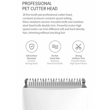 XIAOMI YOUPIN Pawbby MG-HC001 Elektrisk barbermaskin til kjæledyr Oppladbar hundetrimmer med smøresikkert og avrundet blad, skader ikke kjæledyrets hud Profesjonelt kjæledyrskjærehode, kraftig trimming uten hårforstyrrelser Trippel støyreduksjon, ingen trykk eller motstand for kjæledyr utstyrt med en posisjonskam, fire lengder hår kan klippes etter ønske Stor kapasitet 2000mAh litiumbatteri, hurtiglading og langvarig batteritid Praktisk å gripe, sparer krefter,