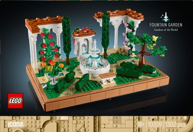 Gled deg over et meditativt prosjekt med byggesettet LEGO® Icons Hage med fontene (10359), et innredningssett til hjem eller kontor for voksne. Slapp av mens du skaper hver enkelt forseggjorte detalj, og flytt om på trær, blomster, pergolaer og hagens fire hjørner for å skape selve drømmehagen.