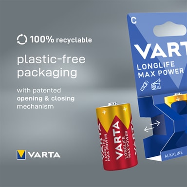 Gi strøm til dine enheter på sikkert vis med Varta Longlife Max Power C batterier. De gir pålitelig energi med høy ytelse, perfekt for lommelykter, musikkspillere, og mer. Praktisk innpakning gjør oppbevaring og gjenvinning til en lek.Les mer om produktet