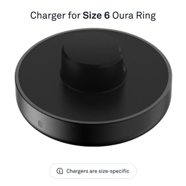 Med Oura Ring Gen3 lader kan du enkelt lade opp batteriet til smartringen din. Den størrelsesspesifikke laderen leveres med både USB-A- og USB-C-kabler og kan lade ringen helt opp på rundt 80 minutter.Les mer om produktet