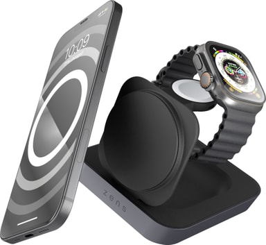 Lad alle enhetene dine med den praktiske Zens Nightstand Charger Pro 2. Den MagSafe- og Qi2-kompatible laderen tilbyr opptil 15W ladehastigheter mens Apple Watch-puten støtter rask 5W-lading. Kompatibel med 3 mm eller tynnere deksler.Les mer om produktet