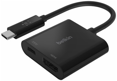 Belkin USB-C til HDMI-adapter lar deg koble til en USB-C-enhet til en HDMI-skjerm samtidig som du får opptil 60W Power Delivery for å lade enheten.