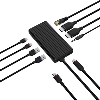 • Unisynk 9 port 4K 100W USB-C hub (sort)