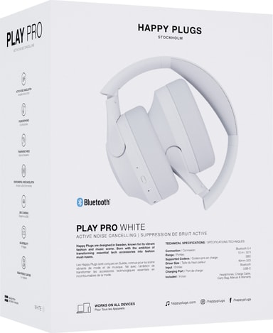 • Happy Plugs Play Pro helt trådløse around-ear hodetelefoner (hvit)