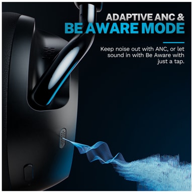 Avansert adaptiv støydemping reagerer på omgivelsene i sanntid og justerer støydempingsnivået opptil 42 dB. Aktiver Be Aware-modus for å slippe inn omgivelseslyd når du ønsker å høre det som skjer rundt deg.
