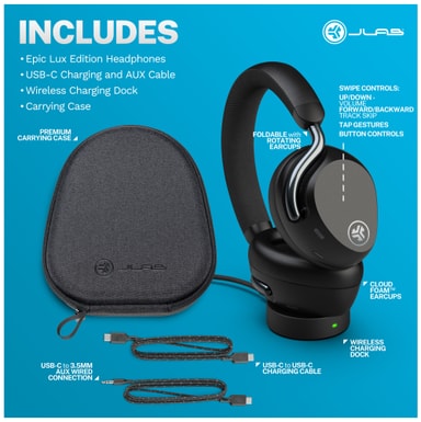 • JLab Epic Lux Lab Edition trådløse around-ear hodetelefoner (sort)