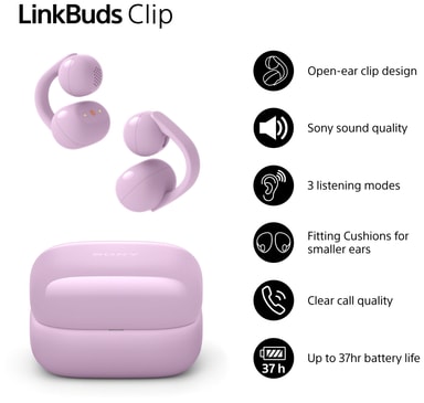 Sony LinkBuds Clip helt trådløse open-ear hodetelefoner (lavendel)