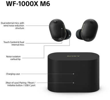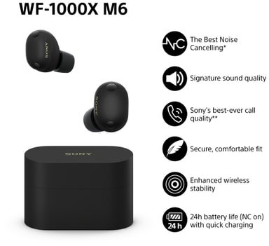 - Sony WF-1000XM6 helt trådløse hodetelefoner (sort)