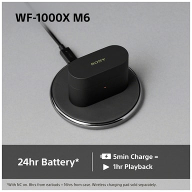 WF-1000XM6 er fullstendig trådløse, noe som gir deg total frihet uten kabler mellom enheten din og øreproppene. Nyt musikken din kabelfritt enten du er på vei til jobb, på reise eller slapper av hjemme.