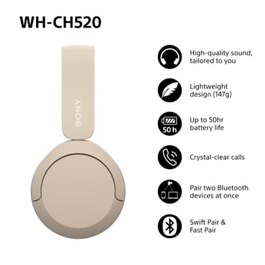 • Sony WH-CH520 trådløse on-ear hodetelefoner (beige)