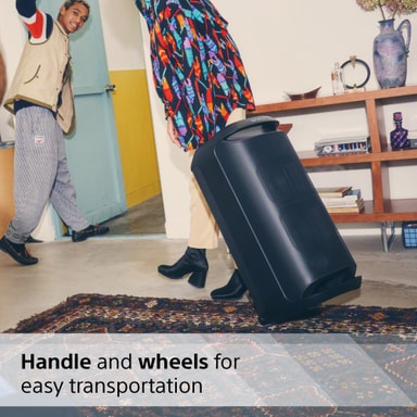 Sony SRS-XV800 trådløs bærbar høyttaler vil gjøre enhver fest innendørs eller utendørs til en minneverdig opplevelse. Et utrolig lydoppsett garanterer en fantastisk lyd med en dyp bass, og takket være det bærbare designet vil du kunne ta den med hvor som helst. Koble til dine smartenheter med Bluetooth og strøm dine favorittsanger, du vil også kunne fylle rommet med lyd og lys takket være 360° lyd og LED-partylys. Opptil 25 timer med spilletid lar festen fortsette så lenge du ønsker, du kan videre også vise frem dine egne ferdigheter ved å koble til en mikrofon eller gitar for å imponere gjester og ta underholdningen enda et steg videre. Bruk den gratise appen eller Google Assistant for å styre høyttaleren på en enkel og praktisk måte.