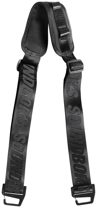SOUNDBOKS GO reim gjør at du praktisk kan ta med din Soundboks GO-høyttaler på reise. Den justerbare, superkomfortable bærereimen festes enkelt på en av de sikre, MOLLE System-inspirerte festestroppene på høyttaleren.