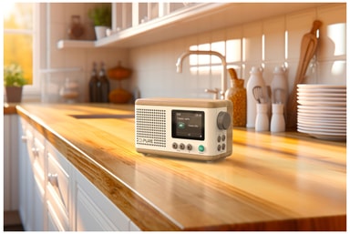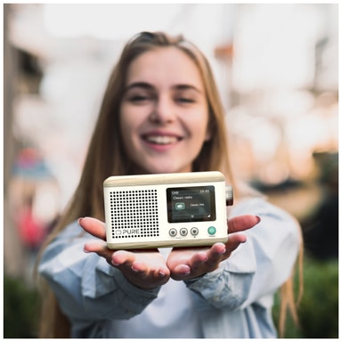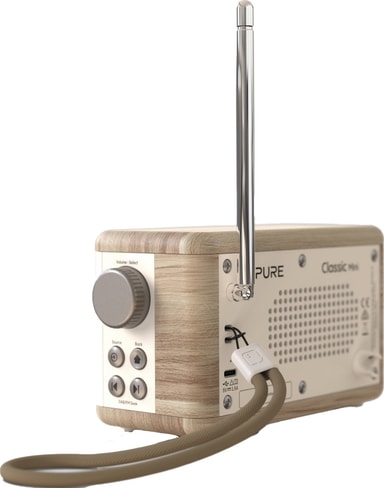 • Pure Classic Mini bærbar digitalradio (bomullshvit, eik)