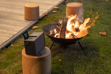 Åpne displayet for å få tilgang til avanserte innstillinger som EQ og Bluetooth-tilkobling. Og lukk det igjen for å beholde radioens karakteristiske minimalistiske utseende.