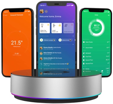 Homey Bridge hjemmekontroller gateway mottar, prosesserer og koordinerer signaler fra flere smartenheter i hjemmet ditt. Homey Bridge fungerer med over 50000 produkter fra over 1000 populære merker. Få orden på smartenhetene dine og daglige rutiner. Den er kompatibel med Amazon Alexa, Apple HomeKit og Google Assistant.