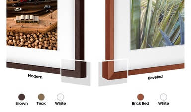 TV handler ikke bare om teknologi, det er også viktig at den passer inn med øvrig interiør. Samsung The Frame TV er som kunstverk når den skrus på, og du vil knapt kunne skille mellom den og andre malerier du har hengende på veggen. For å sikre at TV-en passer perfekt inn i stuen, har Samsung utviklet en serie utskiftbare rammer i ulike farger som er enkle å feste og bytte ved behov.