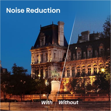 Denne funksjonen eliminerer effektivt kornighet ved å skanne og filtrere hver bilderamme. Denne prosessen forbedrer klarheten i lavlysscener og scener med rask bevegelse, og gjenoppretter bildekvaliteten slik at du kan nyte et konsekvent polert og skarpt bilde.