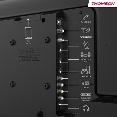 Thomson 40" Easy TV FHD LCD-TV kombinerer allsidige funksjoner for en eksepsjonell seeropplevelse. Med tre HDMI-innganger kan du enkelt koble til enheter som Blu-ray-spillere og spillkonsoller, og alt kan styres med TV-fjernkontrollen. Dens rammeløse design gir apparatet et elegant utseende og lar bildet bli tydelig vist uten hindringer, mens FHD-oppløsning sikrer skarp bildekvalitet. Dolby Audio gir oppslukende lyd med tydelig dialog og dyp bass. Triple Tuner og CI+-spor gir fleksibel tilgang til kabel-, satellitt- og krypterte kanaler.