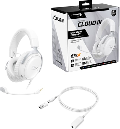 HyperX Cloud III gaming-headset har 53mm-drivere, en lettvektig konstruksjon på 320g, en 10mm støydempende mikrofon, USB-C- og 3,5mm-tilkobling, samt øreputer av minneskum for en komfortabel, ergonomisk passform.Les mer om produktet