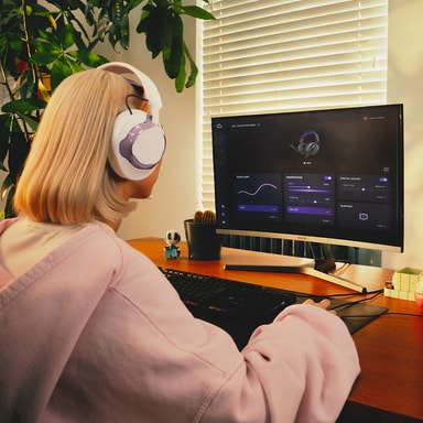 JBL QuantumENGINE tilbyr en tilpassbar lydprofil som lar deg justere innstillingene etter eget ønske. Dette enhetsspesifikke kontrollpanelet hjelper deg med å visualisere spillydplasseringer i sanntid, reduserer uønsket støy og optimaliserer mikrofonytelsen. Den kobler også sømløst sammen flere JBL Quantum-hodesett, noe som gjør den perfekt for alle spillplattformer.