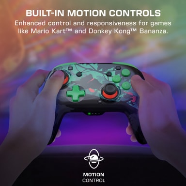Denne kontrolleren har innebygde gyroskopiske sensorer for full støtte for bevegelseskontroll. Dette gir intuitiv sikte i skytespill, presis styring i Mario Kart og gestusstyrte bevegelser i Super Mario Odyssey, og leverer en responsiv opplevelse.
