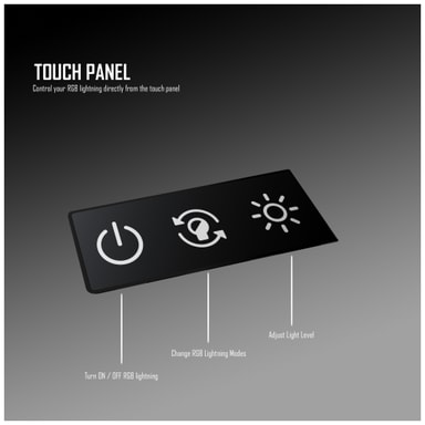 Forbedre oppsettets belysning med RGB-belysning, som kan styres via et touchpanel på toppen av bordet. Det er lett å endre farger, veksle mellom effekter, eller skru av lyset uten å reise deg opp fra stolen.