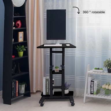 Med dette skrivebordet kan du bruke din stasjonære eller bærbare datamaskin til underholdning hvor du vil i hjemmet. Skrivebordet har feste til skjerm som kan roteres 360 grader.