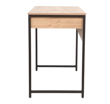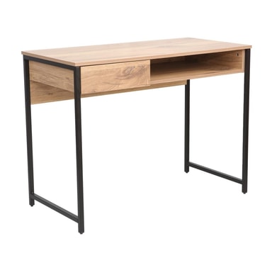 Skrivebord DIMITRA med skuff 100x50xH76cm, rustikk/svart.Materiale: melaminplate.Farge: lyst rustikk tre/sort.Bordrammen er laget av metall og ferdig med svart pulverlakk.Les mer om produktet