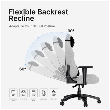 En avtakbar nakkestøtte gir personlig tilpasset komfort, mens den avtakbare korsryggstøtten sørger for at du ikke får vondt i ryggen selv under langvarig spilling eller kontorarbeid.