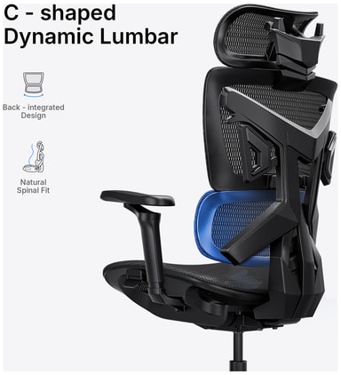 Stolens dynamiske korsryggstøtte tilpasser seg ulike sittestillinger og gir solid ryggstøtte i alle posisjoner. Med en fritt flytende vippemekanisme tilbyr den 7-trinns justerbare ryggstøtten en tilbakelening fra 105° til 126°, som gir en loungelignende komfort og imøtekommer ulike sittepreferanser.