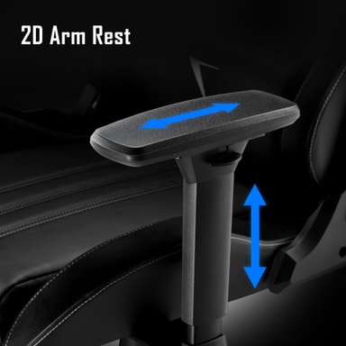 De 2D-justerbare armlenene kan tilpasses vertikalt for høydejustering og horisontalt frem og tilbake, noe som sikrer optimal sittestilling og komfort under intense spilløkter.