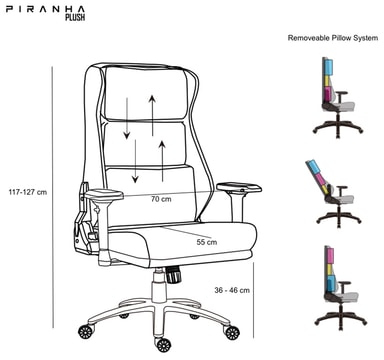 Piranha Plush gamingstol har et smart ryggsystem med tre puter, justerbare 2D-armlener og en slitesterk konstruksjon. Butterfly-vippemekanismen gjør det mulig å lene stolen jevnt bakover. Den tåler en vekt på opptil 120 kg.Les mer om produktet