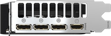 Utstyrt med tre DisplayPort- og én HDMI-tilkobling, støtter kortet opptil fire skjermer, noe som muliggjør omfattende oppsett med flere skjermer.