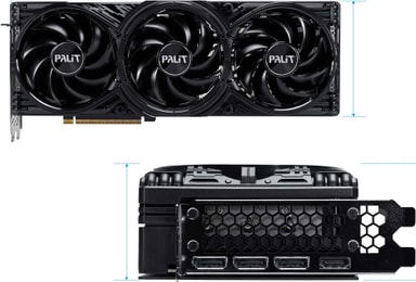 Grafikkortet har støtte for opptil fire skjermer, og har tre DisplayPort 2.1b-tilkoblinger og én HDMI 2.1b-tilkobling, noe som gir mulighet for allsidige skjermoppsett og forbedret produktivitet.