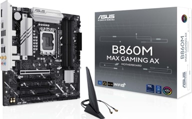 ASUS B860M MAX GAMING AX hovedkort tilbyr neste generasjons spilling med DDR5 opp til 8666 MT/s, PCIe 5.0, Wi-Fi 6, AI-optimalisering og robust strømforsyning, noe som sikrer topp ytelse og tilkoblingsmuligheter for spillere og skapere.Les mer om produktet