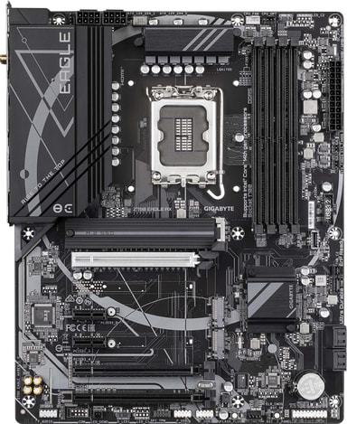 Gigabyte Z790 EAGLE AX hovedkort, med Intel LGA1700-sokkel, støtter 14./13./12. generasjons prosessorer, har fire DDR5-spor, tre PCIe 4.0 M.2-kontakter, Wi-Fi 6E og 2,5 GbE LAN, noe som sikrer topp ytelse og sømløse tilkoblingsmuligheter.Les mer om produktet