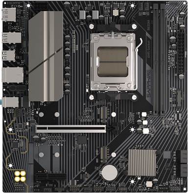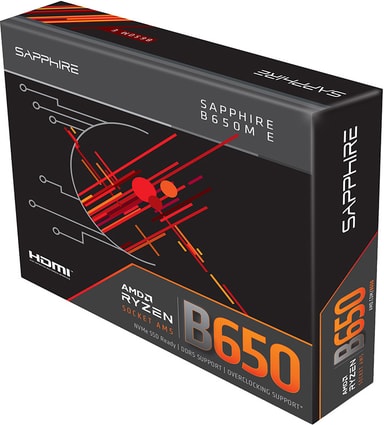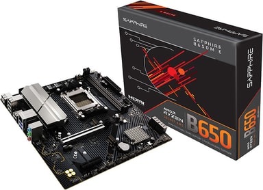 Sapphire B650M-E hovedkort er et kompakt micro ATX AM5-hovedkort som tilbyr stabil ytelse, støtte for DDR5 med to kanaler på opptil 96 GB, to M.2 Key M-spor, pålitelig strømforsyning og viktige tilkoblingsmuligheter for Ryzen-prosessorer.Les mer om produktet