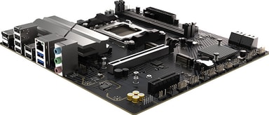 Hovedkortet tilbyr allsidige og høyhastighets lagringsalternativer for å støtte moderne arbeidsoppgaver. Det har to M.2 (Key M)-spor, som muliggjør raske NVMe SSD-er for hurtig oppstart, rask lasting av applikasjoner og effektiv datahåndtering. I tillegg inkluderer hovedkortet SATA-tilkobling, noe som sikrer kompatibilitet med tradisjonelle SSD-er og harddisker.