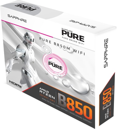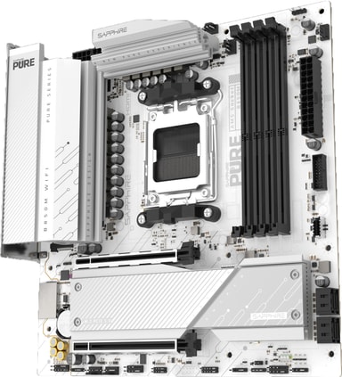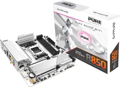 Sapphire Pure B850M WIFI hovedkort er en komponent med høy ytelse som er skreddersydd for teknologientusiaster og gamere. Det er bygget med AMD B850-brikkesettet og støtte for DDR5-minne, noe som gir robust prosessorkraft. MicroATX-formfaktoren gir fleksibilitet ved installasjon, mens integrert Wi-Fi 6 gir avanserte tilkoblingsmuligheter.