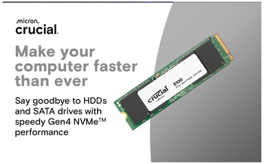 Crucial E100 intern M.2 Gen 4 SSD gir deg en ultrarask, ultrapålitelig lagringsenhet i en liten formfaktor. Nyt opptil 4500/5000 MB/s lese/skrivehastigheter, og lagre store mengder data i denne lille formfaktoren med solid pålitelighet.Les mer om produktet