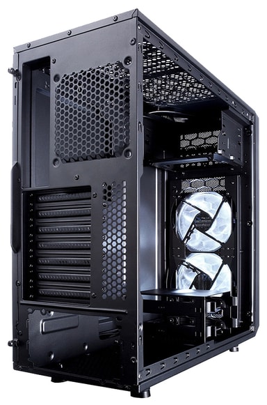 Fractal Design Focus G ATX PC case lets you create a powerful gaming PC with clean layout and modern design. The case lets you install even large GPUs and extensive cooling solutions with tall cooler or radiator assembly. Fully filtered air intakes ensure the inside stays dust-free. The large side window allows you to display the interior of the PC proudly. There are two Silent Series LL 120 mm fans with white LED lighting preinstalled in the case.