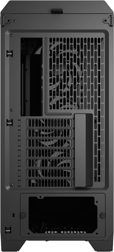 Kabinettet leveres med tre forhåndsinstallerte 140mm Momentum 14-vifter, med mulighet for å montere opptil seks vifter totalt. Du kan installere vannkjøling med radiatorer opptil 360 mm i front, 280mm på toppen og en ekstra 120mm radiator bak.