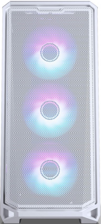 Kabinettet er utstyrt med fire M25-140 Gen2 D-RGB-vifter som gir levende belysning og overlegen kjøling. Disse viftene er strategisk plassert for å maksimere luftstrømmen og opprettholde systemets stabilitet under oppgaver med høy ytelse.
