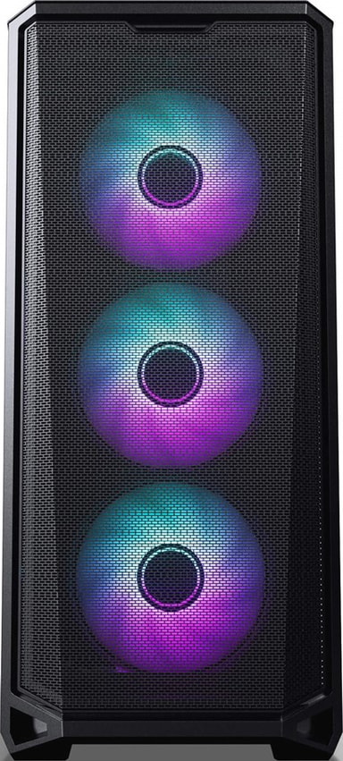 Kabinettet er utstyrt med fire M25-140 Gen2 D-RGB-vifter som gir levende belysning og overlegen kjøling. Disse viftene er strategisk plassert for å maksimere luftstrømmen og opprettholde systemets stabilitet under oppgaver med høy ytelse.