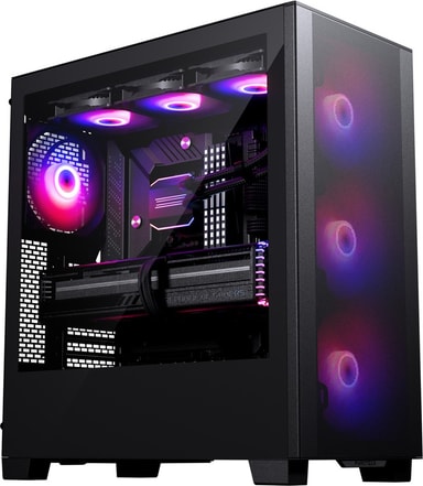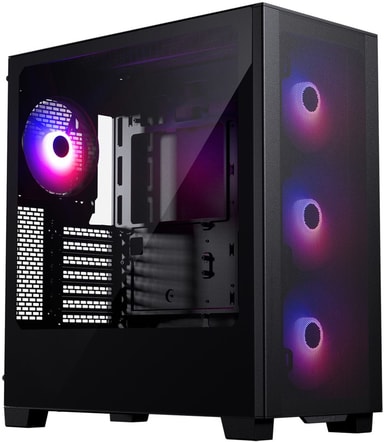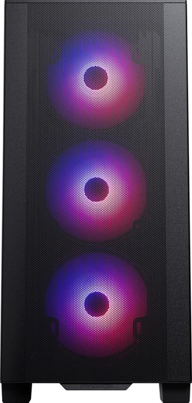 Dette kabinettet er utstyrt med fire 140 mm D-RGB-vifter og kan romme opptil ti 120 mm-vifter, noe som sikrer optimal luftstrøm. Det støtter også 140 mm-vifter og har dedikert plass til radiatorer på toppen, noe som forbedrer kjøleeffektiviteten.
