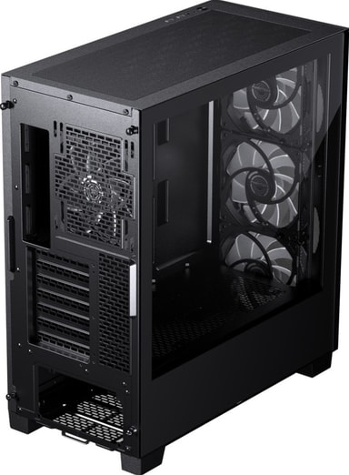 Med tre 120 mm vifteposisjoner på midtplaten for direkte GPU-kjøling støtter kabinettet ulike viftekonfigurasjoner, inkludert bunn-, front-, bak- og toppplassering, noe som gir mulighet for tilpassede kjøleløsninger.