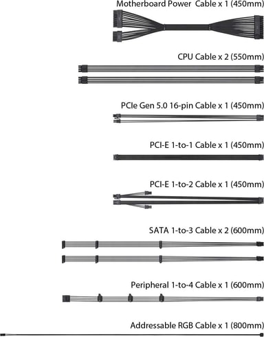 • PCI-E Gen 5 16-pinners kabel x 1 (450 mm)
