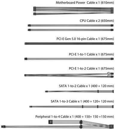 • PCI-E Gen 5 16-pin kabel x 1 (675 mm)