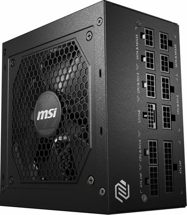 MSI MAG PCIE5 II 750W strømforsyningsenhet er en kraftig og effektiv strømforsyningsenhet for PCen din. Den er 80+ Gold-sertifisert for strømbesparelse, har en stillegående 120mm-vifte, og har helmodulære kabler for enkelt oppsett og håndtering.Les mer om produktet