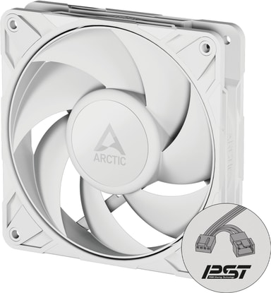 Arctic P12 Pro PST vifte er en 120mm vifte konstruert for kraftig og effektiv kjøling. Den spinner opptil 3000 RPM, noe som betyr at den kan flytte mye luft når systemet ditt blir varmt. Takket være sitt dynamiske væskelager, går den jevnt og stille, og den har lang levetid. Med PWM-støtte kan PCen kontrollere viftehastigheten automatisk.